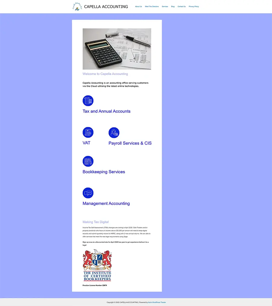 We transformed Capella Accounting’s outdated website into a clean, professional platform that puts clarity and trust at the forefront. The design highlights their award winning services, uses strong visual hierarchy to guide visitors and ensures a seamless experience across all devices.